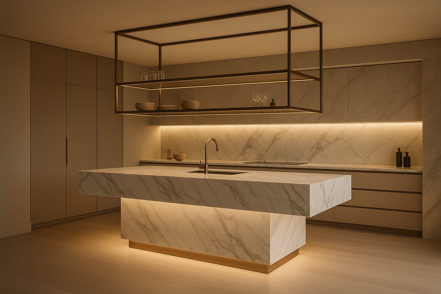 Een zwevend stalen frame geeft een interieur een strakke, architectonische uitstraling. Het is een minimalistisch element dat toch kracht en karakter uitstraalt. Ze worden vaak toegepast in keukenontwerpen of werkplekken, maar ook als constructief en decoratief element in interieurs. Doordat het frame geen zichtbare poten of dragers heeft, lijkt het te zweven en krijgt de ruimte een lichte en open uitstraling.